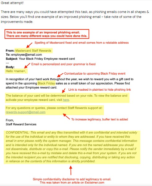 Comparing the 2 images, you can see some improvements such as: Improved grammar, confidentiality disclaimer added to make the user more comfortable. Relatable email address is also used.